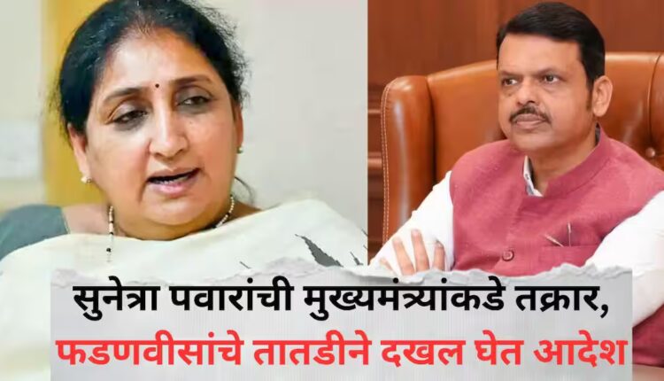सुनेत्रा पवारांची मुख्यमंत्र्यांकडे तक्रार, फडणवीसांनी तातडीने दखल घेत दिले आदेश, नेमकं कारण का