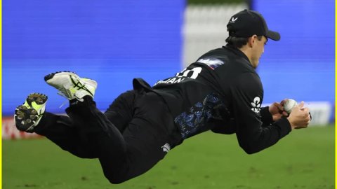 मार्क चॅपमन कॅच: न्यूझीलंड आणि ऑस्ट्रेलिया दरम्यान टी -20 मालिकेचा तिसरा आणि शेवटचा सामना (एनझेड वि ऑस 3 रा टी 20 आय) गेल्या शनिवारी, 04 ऑक्टोबर बे ओव्हल, माउंट मुनगनुई येथे खेळला गेला जेथे किवी टीम स्टार फलंदाज मार्क चॅपमन (मार्क चॅपमन) सुपरमॅन स्टाईलमध्ये खूप गोंधळ उडाला आणि चाहत्यांचा दिवस बनविला. महत्त्वाचे म्हणजे, मार्क चॅपमनच्या या झेलचा व्हिडिओ सोशल मीडियावर अत्यंत व्हायरल होत आहे.