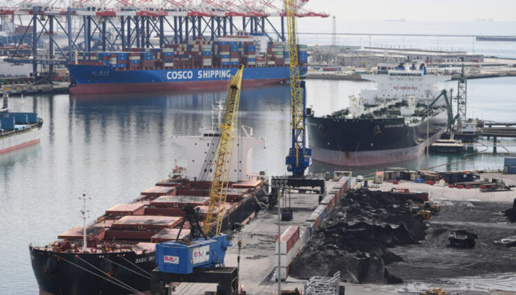 शुक्रवारी, 20 फेब्रुवारी, 2026 रोजी, लॉन्ग बीच, कॅलिफोर्नियामध्ये एक कंटेनर जहाज लाँग बीच बंदरावर डॉक केले आहे. (एपी फोटो/डॅमियन डोवारगेनेस)
