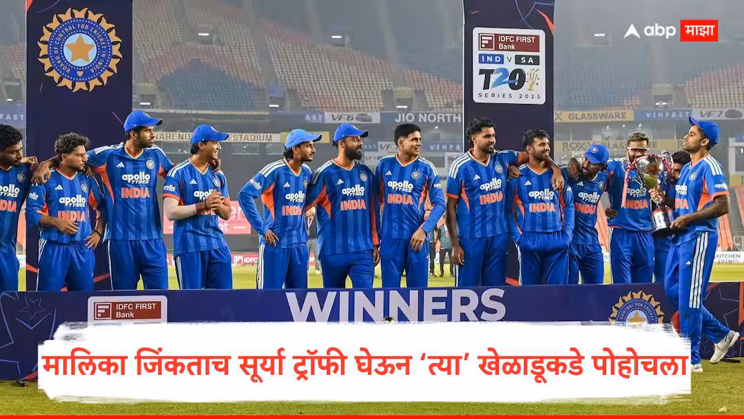 सूर्यकुमार यादव यांनी शाहबाज अहमदला ट्रॉफी दिली : सूर्यकुमार यादवच्या नेतृत्वाखाली टीम इंडियाने 2025 वर्षांचा शेवट दणक्यात केला. अहमदाबादमध्ये खेळल्या गेलेल्या पाचव्या टी20 सामन्यात भारताने दक्षिण आफ्रिकेला 30 धावांनी पराभूत करत पाच सामन्यांची मालिका 3-1 अशी जिंकली. टीम इंडियामध्ये परंपरेनुसार मालिका जिंकल्यानंतर ट्रॉफी संघातील सर्वात युवा किंवा मालिकेत पदार्पण करणाऱ्या नवख्या खेळाडूला दिली जाते. मात्र यावेळी हा नियम मोडला गेला. शुभमन गिलच्या सल्ल्यावरून कर्णधार सूर्यकुमार यादवने ट्रॉफी थेट 31 वर्षीय शहबाज अहमदकडे सोपवली. ट्रॉफी मिळताच शहबाज स्वतःही थक्क झालेला दिसला. या खास क्षणाचा व्हिडिओ बीसीसीआयने आपल्या सोशल मीडिया अकाउंटवर शेअर केला आहे.