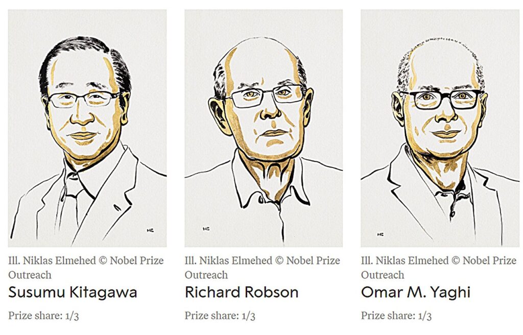सुसुमु कितागावा, रिचर्ड रॉबसन, ओमर एम यागी रसायनशास्त्रात नोबेल पारितोषिक सामायिक करतात