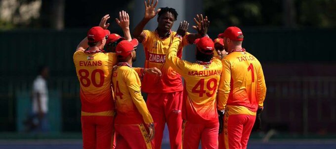 झिम्बाब्वे खेळत आहे 11: ब्रायन बेनेट, तादिवानाशे मारुमणी(डब्ल्यू), डीओन मायर्स, सिकंदर रझा(क), रायन बर्ल, टोनी मुन्योंगा, ताशिंगा मुसेकिवा, ब्रॅड इव्हान्स, ग्रीम क्रेमर, रिचर्ड नगारावा, आशीर्वाद मुझाराबानी