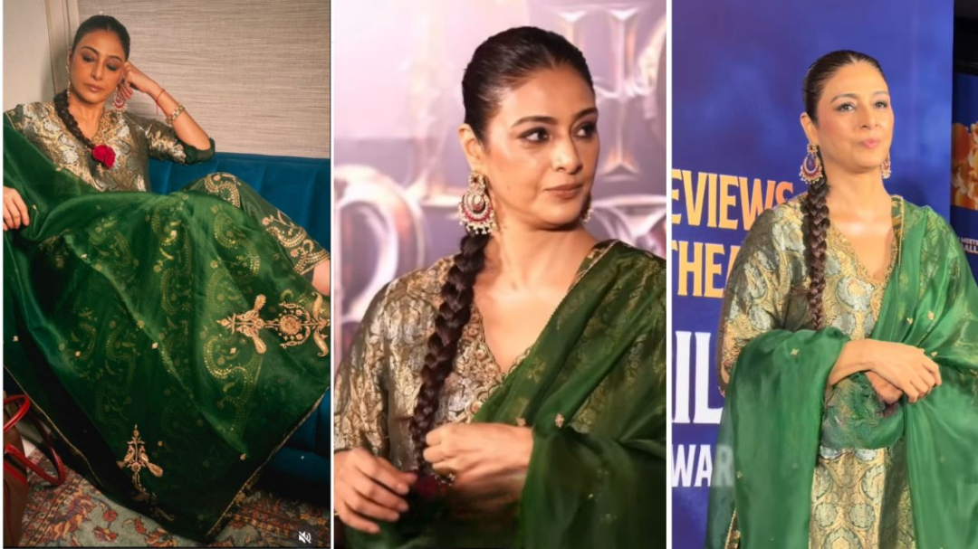 हेअरस्टाइलबद्दल बोलायचे तर तब्बूने ती अगदी साधी ठेवली. तिने तिचे केस घट्ट आणि व्यवस्थित वेणीत स्टाईल केले आहेत. मिड पार्टिंगसह, केसांना मागील बाजूस स्लीक लुक देण्यात आला आहे. ही केशरचना तिचा पारंपारिक पोशाख अधिक धारदार आणि शोभिवंत बनवत आहे. फ्रीझ-फ्री आणि व्यवस्थित फिनिश, संपूर्ण लुक पॉलिश बनवते.