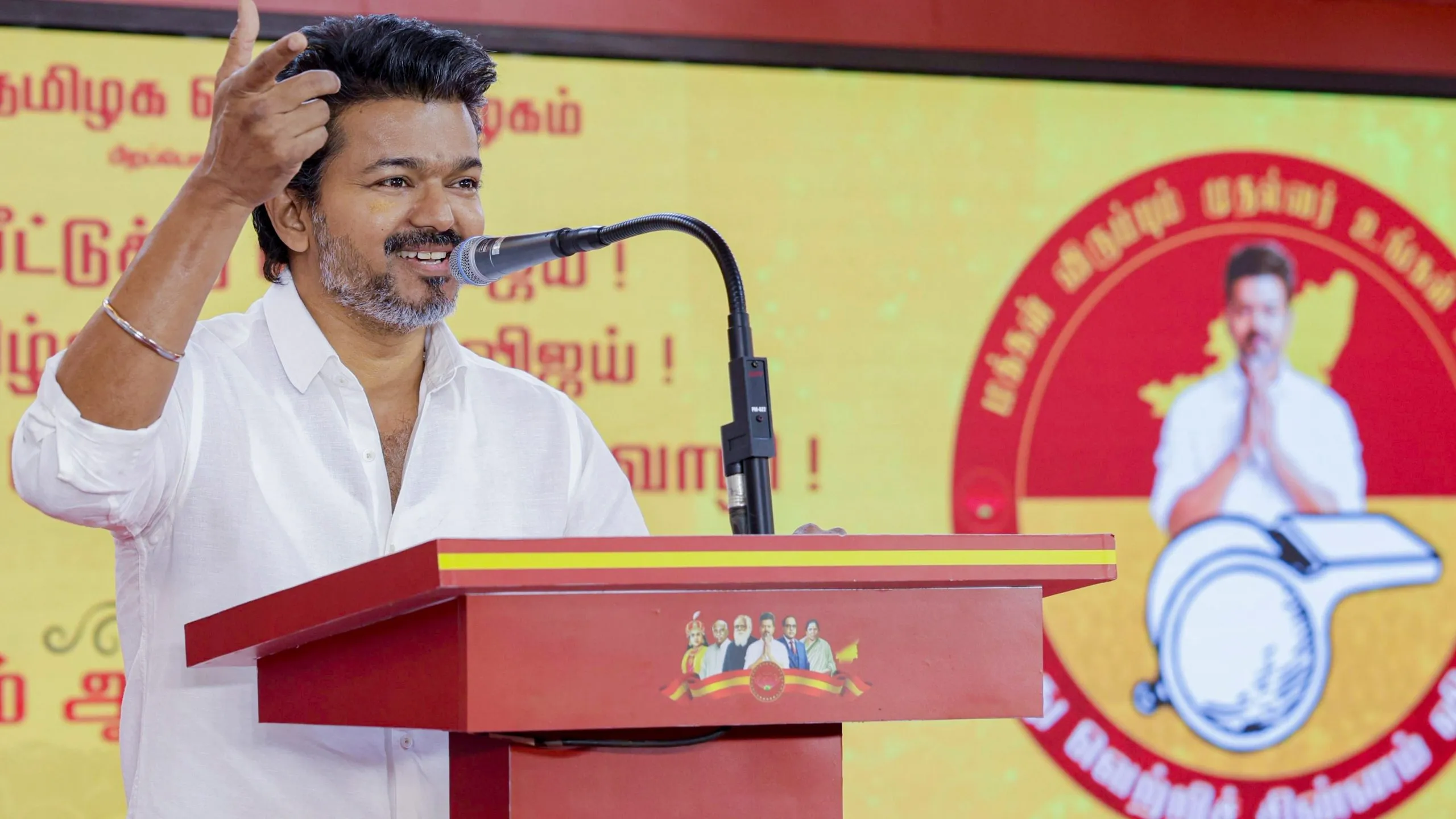 तामिळनाडूत यंदा होणाऱ्या विधानसभा निवडणुकीवरून राजकारण तापले आहे. याचदरम्यान तमिलगा वेत्री कझगम (टीव्हीके)चा प्रमुख आणि अभिनेता थलपति विजय यांनी एका जाहीर सभेला संबोधित करत सत्तारुढ द्रमुक सरकारवर जोरदार निशाणा साधला आहे. याचबरोबर सभेच्या व्यासपीठावरून विजय यांनी लोकांना शपथ दिली आहे. माझे मत माझा अधिकार असून याला कुणीच खरेदी करू शकत नाही. आमचे मत ‘शिटी’साठी आहे असे विजय यांनी उपस्थित समुदायाला उद्देशून म्हटले आहे. शिटी हे त्याच्या पक्षाचे चिन्ह आहे. स्वत:च्या मताचा योग्यप्रकारे वापर करा आणि कुणाच्या दिशाभूलला बळी पडू नका असे आवाहनही त्याने केले आहे.
