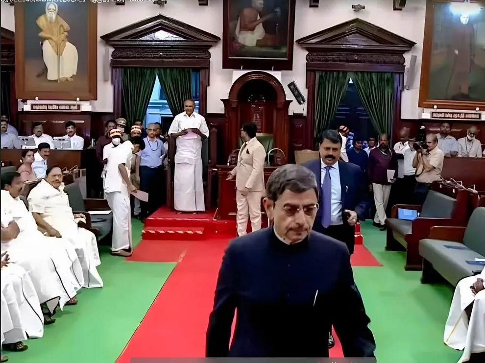 तामिळनाडूच्या राज्यपालांनी विधानसभेतून सभात्याग केला.