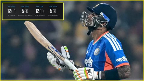 2025 मध्ये सूर्यकुमार यादवची T20I आकडेवारी: 2025 मध्ये क्रिकेट जगतात मिस्टर 360 म्हणून प्रसिद्ध असलेला टीम इंडियाचा कॅप्टन सूर्यकुमार यादव 21 टी-20 आंतरराष्ट्रीय सामन्यांच्या 19 डावांमध्ये केवळ 218 धावा करू शकला यावर कोणाचाही विश्वास बसणार नाही. परिस्थिती अशी होती की या काळात, SKY ने 13.62 च्या अत्यंत खराब सरासरीने आणि 123.16 च्या अल्प स्ट्राइक रेटने या धावा जोडल्या आणि एकही अर्धशतकही झळकावले नाही.