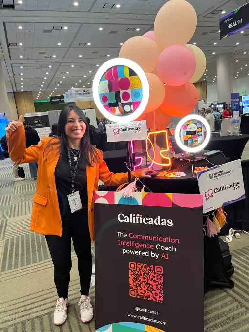 Calificadas ने अर्जेंटिनापासून त्यांच्या बूथ सेटअपपर्यंत ऊर्जा, रंग आणि सर्जनशीलता आणली. त्यांनी त्यांच्या AI-शक्तीवर चालणाऱ्या कम्युनिकेशन इंटेलिजन्स कोचचे परस्परसंवादी पद्धतीने प्रात्यक्षिक करून, उपस्थितांना बूथवर त्यांचे प्लॅटफॉर्म थेट वापरण्यास प्रोत्साहित केले. ते त्यांच्या पंक्तीची चर्चा होते आणि अगदी बरोबर!