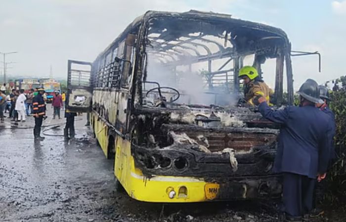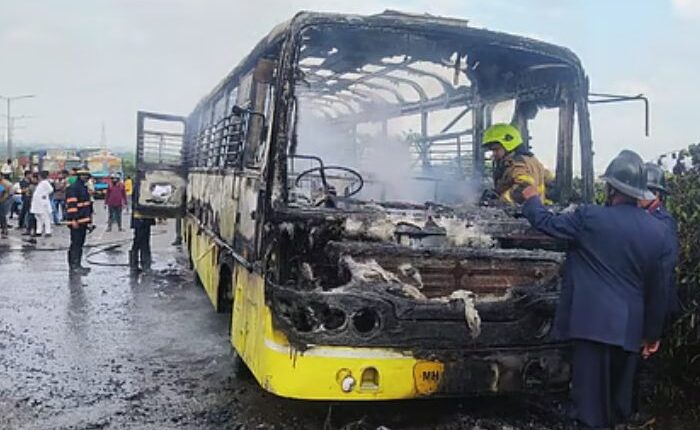 देव तारी त्याला कोण मारी ठाण्यातील थरारक घटना, विद्यार्थ्यांना उतरवले आणि स्कूल बस पेटली