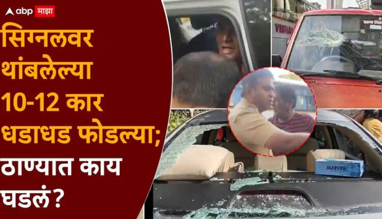 ठाण्यात सिग्नलवर गाड्या थांबल्या, माथेफिरू बांबू घेऊन आला आणि 10-12 कार धडाधड फोडल्या, काय घडलं?, PHOTO