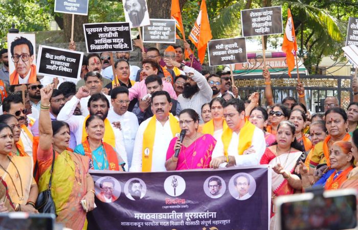 अतिवृष्टीग्रस्त शेतकऱ्यांना भरीव मदत द्या! बळीराजासाठी शिवसेनेचे आंदोलन, ठाणे, पालघर जिल्हाधिकारी कार्यालयावर धडक मोर्चा