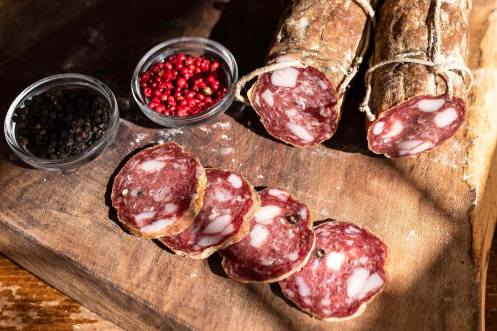कोरडी बरी केलेली सलामी नैसर्गिकरित्या कालांतराने थोडा गडद पृष्ठभाग विकसित करते.