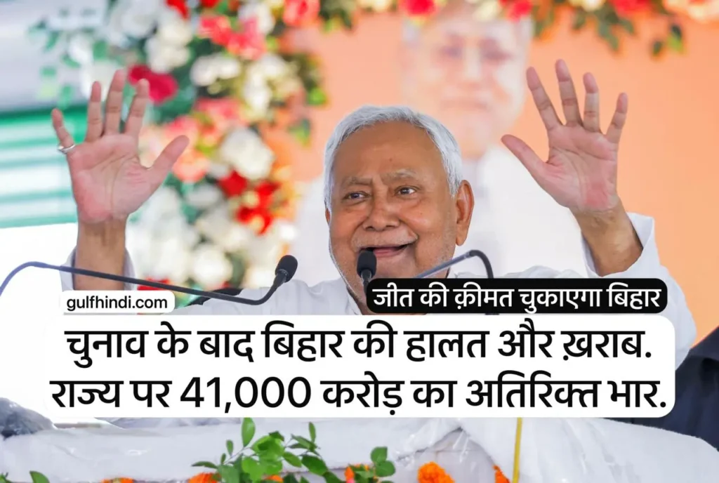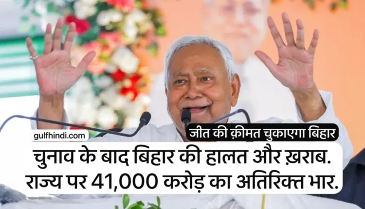 बिहारमधील विजयाने ४१ हजार कोटींचा बोजा वाढला, निवडणुकीतील आश्वासने करदात्यांच्या खिशाला रिकामी करणार आहेत.