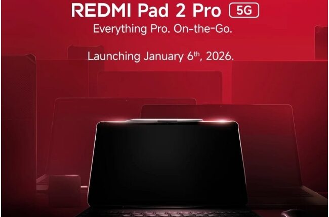 Redmi Pad 2 Pro टॅबलेटचे लँडिंग पृष्ठ आधीपासूनच ब्रँडच्या अधिकृत भारत वेबसाइटवर तसेच Amazon आणि Flipkart शॉपिंग प्लॅटफॉर्मवर थेट आहे. भारतातील या उपकरणासाठी काही प्रमुख वैशिष्ट्ये छेडण्यात आली आहेत, ज्यात क्वालकॉम स्नॅपड्रॅगन 7s Gen 4 प्रोसेसर, 12.1″ डिस्प्ले (QHD+ रिझोल्यूशनसह, 120Hz रिफ्रेश रेट आणि डॉल्बी व्हिजन सपोर्टसह), 12,000mAh बॅटरी बॅकअप, डॉल्बी ॲटमॉस-समर्थित साउंड अप 30%, 30% डिलिव्हरी सेटअप. मेटल युनिबॉडी डिझाइन, 7.5 मिमी जाडी आणि 610 ग्रॅम. वजने समाविष्ट आहेत. Geekbench नुसार, हा डिवाइस Android 15 OS सह देखील येईल.