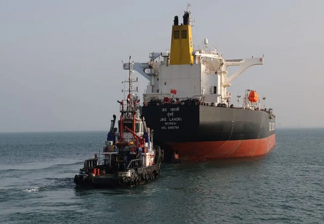 टँकर जग लडकी कच्च्या तेलासह अदानी बंदरांवर पोहोचले, जहाजावर 80,886 मेट्रिक टन तेल भरले आहे.