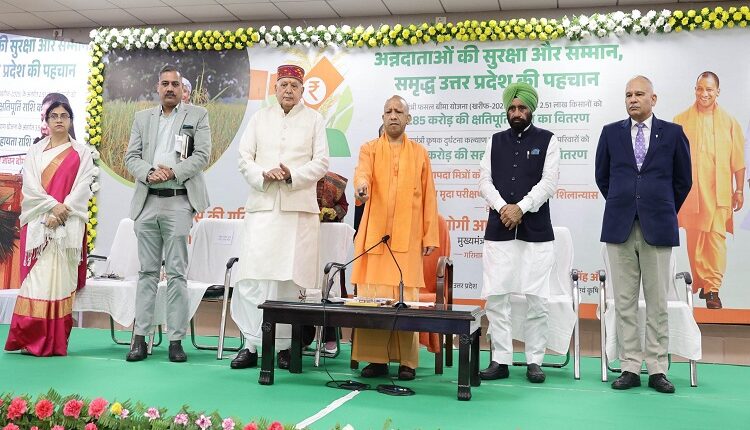 मुख्यमंत्री @myogiadityanath जी आज लखनौमध्ये प्रधानमंत्री फसल विमा योजनेंतर्गत 2.51 लाख अन्नदाता शेतकऱ्यांना नुकसानभरपाईची रक्कम आणि मुख्यमंत्री शेतकरी अपघात कल्याणकारी योजनेअंतर्गत मदत रकमेच्या वितरण कार्यक्रमात सहभागी झाले होते. pic.twitter.com/QkyKVLe1UO