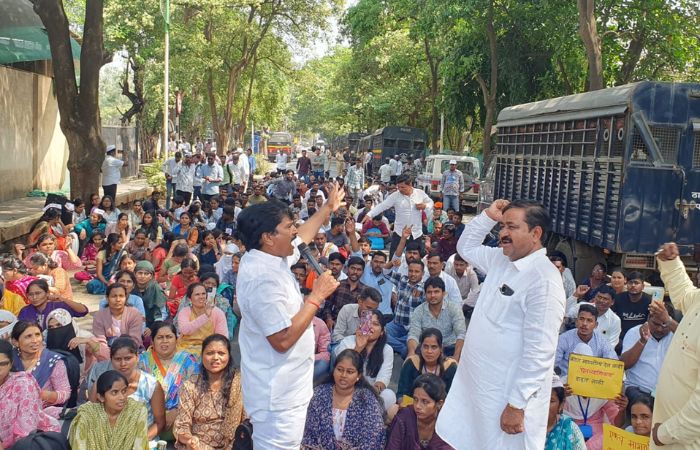 ठाण्यात एकनाथ शिंदे यांच्याविरोधात बेरोजगार तरुणांचा जिल्हाधिकारी कार्यालयासमोर ठिय्या