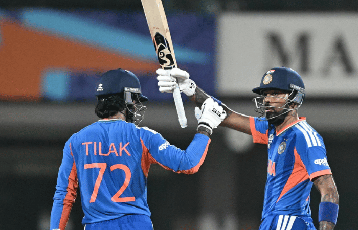 अभिषेक शर्मा (55), हार्दिक पांड्या (50*) आणि तिलक वर्मा (44*) यांच्या तुफानी फटकेबाजीच्या जोरावर हिंदुस्थानने 4 बाद 256 धावा केल्या. टी-20 वर्ल्डकप इतिहासातील हिंदुस्थानचा आतापर्यंतचा हा सर्वोच्च स्कोअर ठरला आहे.