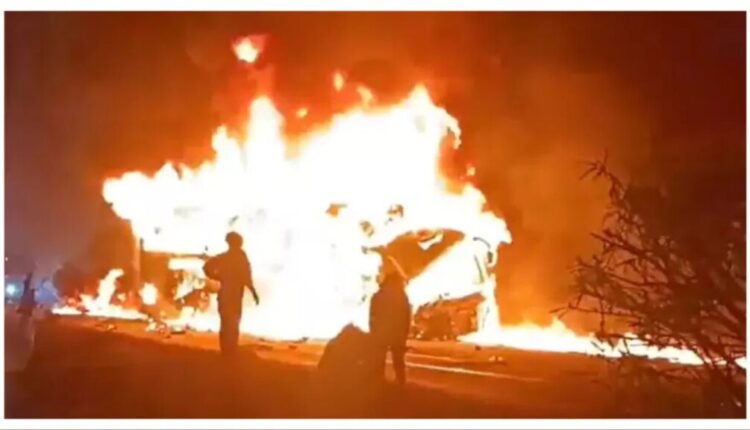 करटकाच्या चित्रदुर्गात लॉरीला धडकल्यानंतर स्लीपर बसला आग लागल्याने दुर्घटना