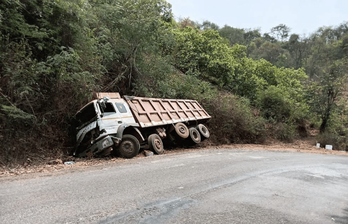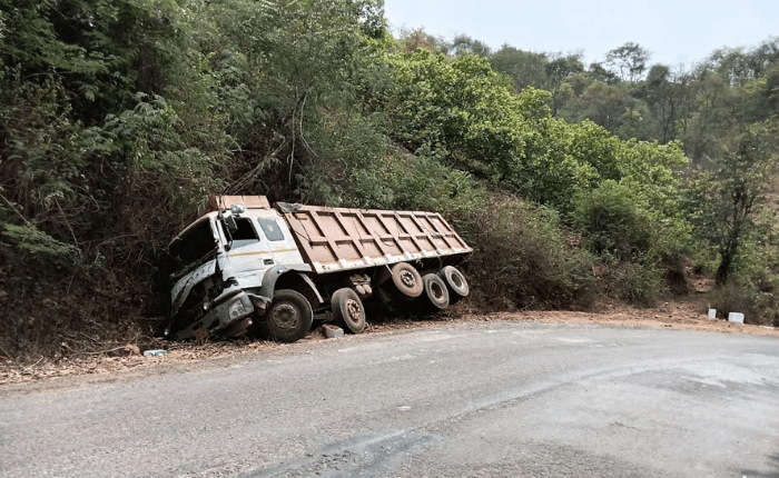 Sangmeshwar News – साखरपा–देवरुख मार्गावर ट्रकचा अपघात; चालक जखमी