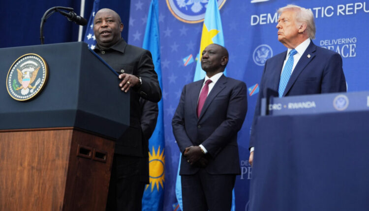वॉशिंग्टन – राष्ट्राध्यक्ष डोनाल्ड ट्रम्प यांनी गुरुवारी डेमोक्रॅटिक रिपब्लिक ऑफ काँगो आणि रवांडाच्या नेत्यांचे कौतुक केले कारण त्यांनी पूर्व काँगोमध्ये अनेक वर्षांचा रक्तपात थांबविण्याच्या उद्देशाने अमेरिकेच्या मध्यस्थीतील शांतता करारावर स्वाक्षरी केली. करार, ज्यामध्ये प्रदेशातील गंभीर खनिज साठ्यांमध्ये अमेरिकन प्रवेशाच्या तरतुदींचा समावेश आहे, ट्रम्पने उत्सुकतेने आलिंगन दिलेला मुत्सद्दी विजय चिन्हांकित केला.