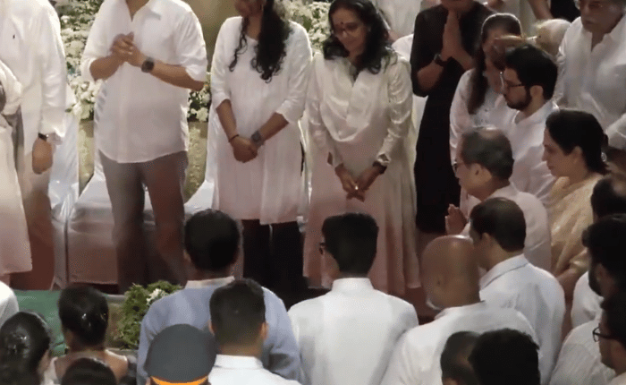 #पाहा | महाराष्ट्र | शिवसेना UBT प्रमुख उद्धव ठाकरे, त्यांच्या पत्नी रश्मी ठाकरे आणि नेते आदित्य ठाकरे यांनी दिग्गज गायिका आशा भोसले यांना त्यांच्या मुंबईतील निवासस्थानी अंत्यदर्शनासाठी वाहिली.