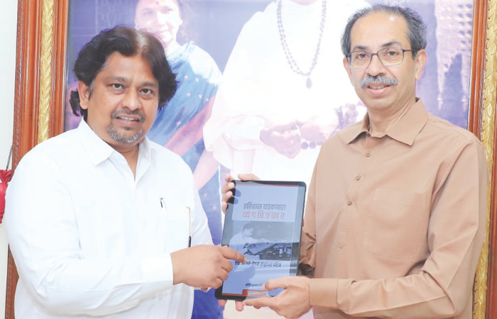 दैनिकातील पूर्णवेळ व्यंगचित्रकार ते एका बलाढ्य राजकीय संघटनेचे सर्वेसर्वा, ‘मार्मिक’कार ते हिंदुहृदयसम्राट शिवसेनाप्रमुख असा प्रवास करीत साठोत्तरी महाराष्ट्राच्या आणि मराठी माणसाच्या इतिहासाला निर्णायक वळण देणारे बाळासाहेब ठाकरे यांच्या स्मृतिदिनानिमित्त शिवसेना पक्षप्रमुख उद्धव ठाकरे यांच्या हस्ते कीर्तिकुमार शिंदे लिखित ‘मातोश्री’ निवासस्थानी ‘इतिहास घडवणारा व्यंगचित्रकार’ या डिजिटल चरित्राच्या पोस्टरचे अनावरण करण्यात आले.