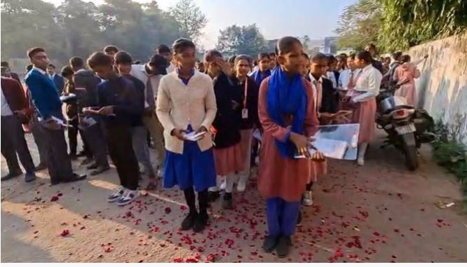 यूपी बोर्ड परीक्षा 2026: यूपी बोर्ड परीक्षा केंद्रांवर उमेदवारांचे पुष्पवृष्टी करून आणि टिळकांनी स्वागत करण्यात आले.