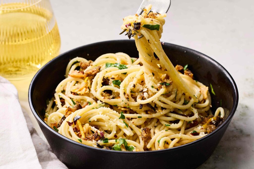तुमचा पास्ता रात्री अपग्रेड करा: लसूण आणि ऑलिव्ह ऑइलसह कुरकुरीत सार्डिन स्पेगेटी