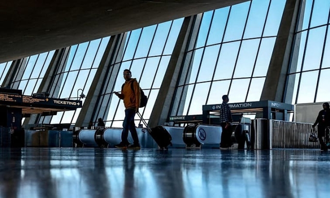 13 नोव्हेंबर 2025 रोजी प्रवासी डलेस, व्हर्जिनिया, यूएस येथील डलेस आंतरराष्ट्रीय विमानतळावरून चालत आहेत. रॉयटर्सचा फोटो