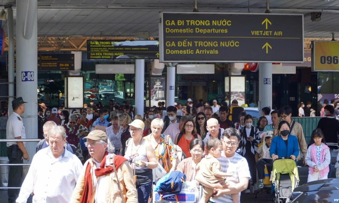 १४ फेब्रुवारी २०२४ रोजी हो ची मिन्ह सिटीमधील टॅन सोन नॉट विमानतळावर प्रवासी आले. VnExpress/Gia Minh द्वारे फोटो |