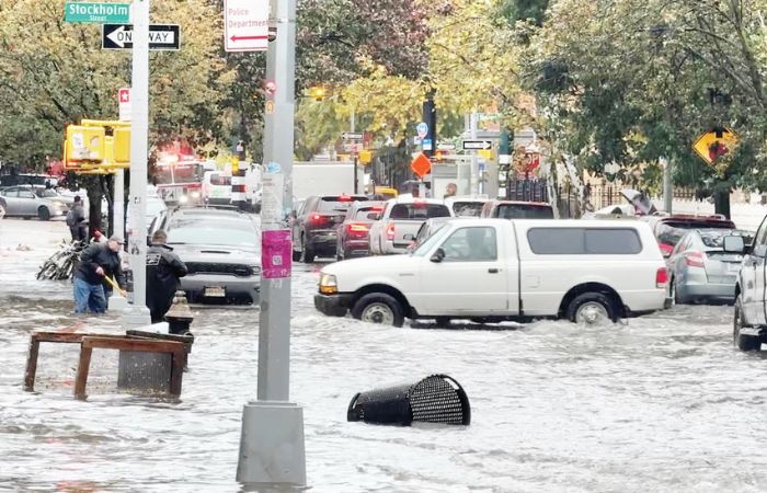 ढगफुटीसदृश पावसाने अमेरिकेचे महत्त्वाचे आर्थिक केंद्र असलेले न्यूयॉर्क शहर पाण्यात बुडाले. अवघी 10 मिनिटे झालेल्या पावसाने शंभर वर्षांतील रेकॉर्ड मोडला. विमान वाहतूक, मेट्रो, बससेवा ठप्प झाली. हजारो घरांतील वीजपुरवठा खंडित झाला. इमारतींच्या बेसमेंटमध्ये पाणी शिरले. पावसाने झोडपल्यामुळे न्यूयॉर्कचे जनजीवन विस्कळीत झाले. दरम्यान, या पावसात दोनजणांचा मृत्यू झाला आहे.
