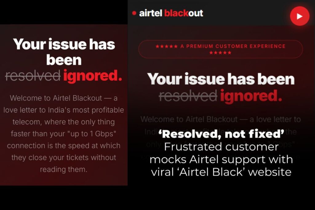 रिपोर्ट्सनुसार, एअरटेलने AirtelBlack.com डोमेनची नोंदणी केली नसल्याचे कळल्यानंतर ग्राहकाने स्वतः डोमेन खरेदी केले. एअरटेल ब्लॅकच्या प्रीमियम सेवेची खिल्ली उडवत त्यांनी या वेबसाइटवर “प्रीमियम सर्व्हिसेस, प्रीमियम दुर्लक्ष” सारख्या व्यंग्यात्मक घोषणा लिहिल्या. या वेबसाईटवर कंपनीच्या ग्राहक सेवेवर तीव्र शब्दांत टीका करण्यात आली आहे.