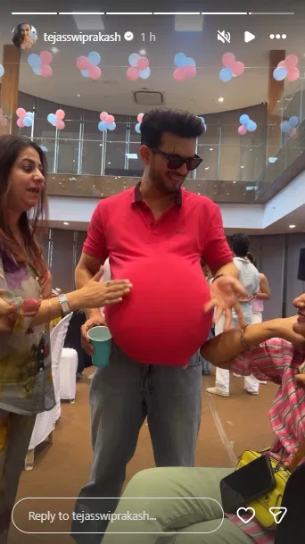 तेजस्वी प्रकाशने तिच्या इंस्टाग्रामवर काही व्हिडिओ शेअर केले आहेत. या व्हिडिओंमध्ये बेबी शॉवरमधील मजा दिसून येते. टीव्ही अभिनेता आणि राईज अँड फॉलचा विजेता अर्जुन बिजलानी देखील त्याच्या मित्रांसोबत मजा करताना दिसला. त्याने बनावट बेबी बंप घातला होता, ज्याचा व्हिडिओ तेजस्वीने शेअर केला आहे. भारतीच्या बेबी शॉवरमध्ये केक देखील कापण्यात आला, जिथे जन्नत झुबेर, अली गोनी आणि जास्मिन भसीन सारख्या सेलिब्रिटी उपस्थित होत्या.