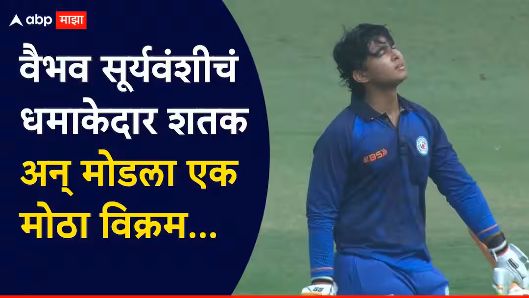 सय्यद मुश्ताक अली ट्रॉफीमध्ये वैभव सूर्यवंशीचं शतक : सय्यद मुश्ताक अली ट्रॉफी 2025 मधील सलग तीन सामन्यांत अपेक्षेपेक्षा कमी कामगिरीमुळे वैभव सूर्यवंशीवर (Vaibhav Suryavanshi) मोठ्या प्रमाणात टीका झाली होती. अनेकांनी त्याच्या फॉर्मवर प्रश्नचिन्ह उपस्थित केले होते. पण या सर्व टीकेला वैभवने आपल्या बॅटनेच योग्य उत्तर दिलं. चौथ्या सामन्यात महाराष्ट्राविरुद्ध मैदानात उतरताच वैभवने जबरदस्त शतक झळकावलं. खास म्हणजे त्याने षटकार मारत शतक पूर्ण केले. वैभवने आपल्या शतकात जितके षटकार ठोकले तितकेच चौकारही मारले आणि फक्त 58 चेंडूंत शतक ठोकले.