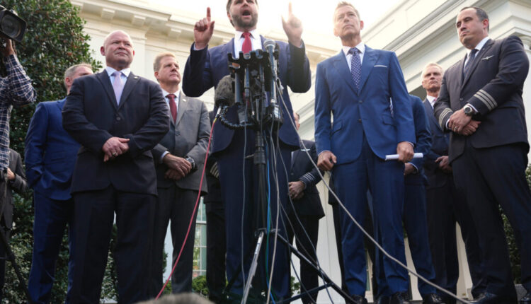 शटडाऊनच्या वाढत्या परिणामांचे मूल्यांकन करण्यासाठी व्हॅन्सने व्हाईट हाऊसमध्ये विमान वाहतूक आणि वाहतूक क्षेत्रातील नेत्यांना एकत्र केले. युनायटेड एअरलाइन्स आणि अमेरिकन एअरलाइन्सच्या उच्च अधिकाऱ्यांनी, हवाई वाहतूक नियंत्रक आणि युनियनीकृत फेडरल कामगारांचे प्रतिनिधित्व करणाऱ्या कामगार नेत्यांसह, वेतनाचा अभाव, कमी झालेले मनोबल आणि मर्यादित पर्यायांमुळे ताणलेल्या उद्योगाचे अंधुक चित्र रेखाटले.