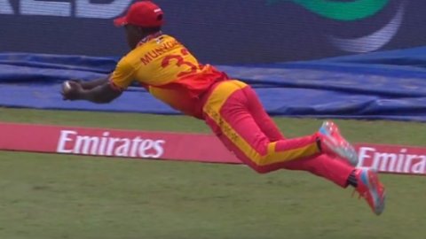 टोनी मुन्योंगाने डीप मिड-विकेटवरून 15 मीटर धाव घेतली आणि सुपरमॅन शैलीत हा झेल घेतला. या अप्रतिम झेलचा व्हिडिओ सोशल मीडियावर व्हायरल होत आहे, जो तुम्ही खाली पाहू शकता.