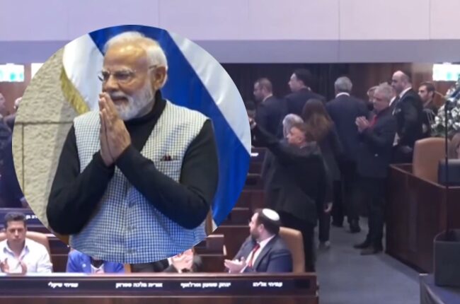 इस्रायलच्या संसदेत मोदींचे नाव पुकारताच तेथील विरोधकांनी बहिष्कार टाकला.