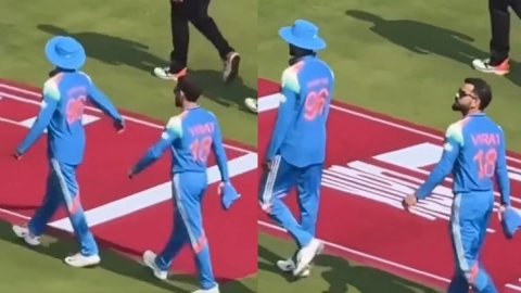 वडोदरा क्रिकेट असोसिएशन स्टेडियमवर भारतीय खेळाडूंनी राष्ट्रगीतासाठी मैदान घेतले तेव्हा कर्णधार शुभमन गिल सर्वात पुढे होता. उपकर्णधार श्रेयस अय्यर आणि नंतर विराट कोहली त्याच्या मागे लागले होते. दरम्यान, कोहलीने श्रेयस अय्यरकडे बोट दाखवत त्याच्या चालण्याच्या शैलीची कॉपी करायला सुरुवात केली. खांदे सरकवण्याची आणि छाती उंच धरून चालण्याची त्याची शैली कॅमेऱ्यात स्पष्टपणे कैद झाली आहे.