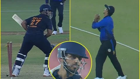 होय, तेच घडले आहे. वास्तविक, दिल्लीच्या डावाच्या 18व्या षटकात हे दृश्य दिसले. सौराष्ट्रसाठी कर्णधार जयदेव उनाडकट स्वतः हे षटक टाकण्यासाठी आला होता, ज्याच्या पहिल्याच चेंडूवर नितीश राणा मोठा षटकार मारण्याच्या प्रयत्नात असताना डीप क्षेत्ररक्षकाने झेलबाद केले. लक्षात घेण्यासारखी गोष्ट म्हणजे येथे नितीश राणाला त्याचा फटका खेळण्याच्या प्रयत्नात विकेटही लागली.