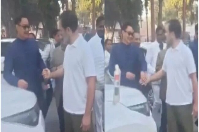 या व्हिडिओमध्ये किरेन रिजिजू आणि राहुल गांधी एकमेकांशी हस्तांदोलन करताना दिसत आहेत आणि रिजिजू गंमतीने म्हणतात की मी थोडी घाबरलो आहे. या बैठकीला राहुल गांधींसोबत काँग्रेस नेते राजीव शुक्ला आणि उदित राजही उपस्थित होते. राहुल गांधींनी संविधानाला धोका असल्याचा पुनरुच्चार करत आंबेडकरांच्या योगदानाचे स्मरण करत असताना ही बैठक झाली. आज देशभरात आंबेडकरांच्या पुण्यतिथीनिमित्त त्यांना आदरांजली वाहण्यात येत आहे.
