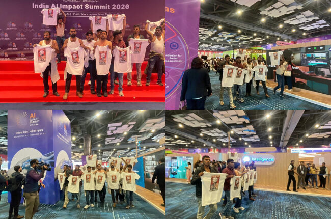 हे सत्य उघड करण्यासाठी, भारतीय युवक काँग्रेसच्या धाडसी कार्यकर्त्यांनी एआय समिट गाठून “तडजोड केलेल्या पंतप्रधान” विरुद्ध निषेध केला!