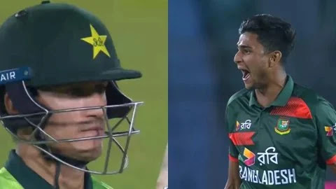 बांगलादेशी वेगवान गोलंदाजाने पाकिस्तानी फलंदाजाला बाद केल्यानंतर त्याला शिवीगाळ केली आणि आक्रमक पाठींबा दिला जो सोशल मीडियावर चर्चेचा केंद्रबिंदू ठरला. हे दृश्य पाकिस्तानच्या फलंदाजीच्या डावाच्या दुसऱ्या षटकात दिसले, जेव्हा नाहिद राणाने माझ सदाकतला पाच चेंडूत सहा धावांवर बाद केले. बाद झाल्यानंतर काही वेळातच राणा पॅव्हेलियनमध्ये परतणाऱ्या पाकिस्तानी फलंदाजाला शिवीगाळ करताना दिसला. या घटनेचा व्हिडिओ तुम्ही खाली पाहू शकता.
