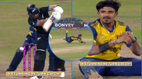 T20 विश्वचषक 2026 च्या सुपर-8 सामन्यात, श्रीलंकेचा स्टार फिरकी गोलंदाज महेश थेक्षानाने न्यूझीलंडचा सलामीवीर फिन ऍलनचा खेळ झटपट संपवला. स्वत:च्या चेंडूवर डायव्हिंग करताना त्याने सुंदर परतीचा झेल घेत संघाला सुरुवातीचे यश मिळवून दिले.