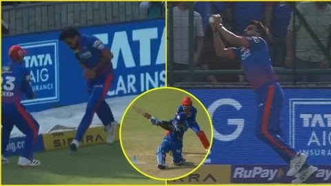 होय, तेच झाले. वास्तविक, ही संपूर्ण घटना मुंबई इंडियन्सच्या डावाच्या १२व्या षटकात घडली. दिल्ली कॅपिटल्ससाठी, हे षटक फिरकी गोलंदाज विपराज निगमने टाकले, ज्याच्या पाचव्या चेंडूवर शेरफेन रदरफोर्डने गुडघ्यावर बसून डीप स्क्वेअर लेगच्या दिशेने एरियल शॉट मारला.