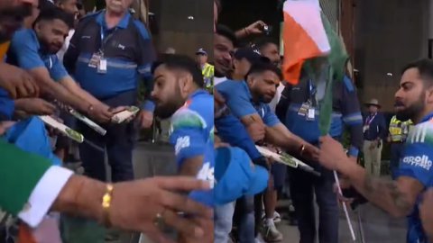 कोहलीने ताबडतोब दखल घेतली आणि थांबून खाली वाकून पडलेला तिरंगा उचलला आणि नंतर प्रेमाने तो पंख्याला परत दिला. स्टेडियममध्ये उपस्थित असलेल्या कॅमेऱ्यांनी आणि चाहत्यांनी हे कृत्य टिपले आणि हा व्हिडिओ सोशल मीडियावर वेगाने व्हायरल झाला. तुम्ही हा व्हिडिओ खाली पाहू शकता.
