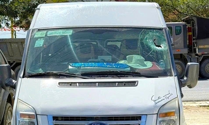 व्हॅनच्या विंडशील्डला खडक पडल्याने नुकसान झाले आहे, परिणामी लॅम डोंग प्रांतात, 8 डिसेंबर, 2025 रोजी एका रशियन प्रवाशाचा मृत्यू झाला आहे. वाचा/तू हुआन्ह यांनी घेतलेला फोटो |