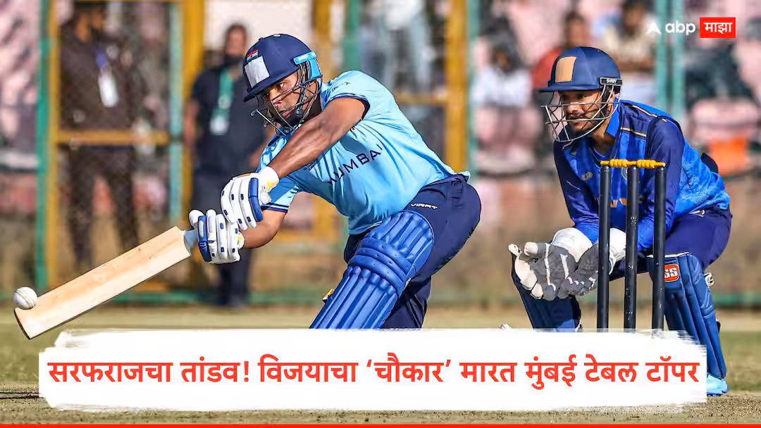 बुधवारी सरफराज खानने 2025 चा शेवट तुफानी खेळीने केला. त्याने 75 चेंडूत 157 धावा केल्या, ज्यामध्ये 14 षटकारांचा समावेश होता. विजय हजारे ट्रॉफीच्या ग्रुप सी सामन्यात गोव्यावर 87 धावांनी विजय मिळवत मुंबईला बाद फेरीच्या जवळ नेले. सय्यद मुश्ताक अली ट्रॉफीमध्येही उत्कृष्ट फॉर्ममध्ये असलेल्या सरफराजने 56 चेंडूत शतक पूर्ण केले, जे लिस्ट ए क्रिकेटमधील त्याचे तिसरे शतक होते. याचा फायदा घेत मुंबईने आठ बाद 444 धावांचा मोठा आकडा गाठला आणि नंतर गोव्याला नऊ बाद 357 धावांवर रोखले. गट साखळीत मुंबईचा हा सलग चौथा विजय होता. आता, उर्वरित तीन सामन्यांपैकी आणखी एक विजय त्यांना निश्चितच उपांत्यपूर्व फेरीत पोहोचवेल.