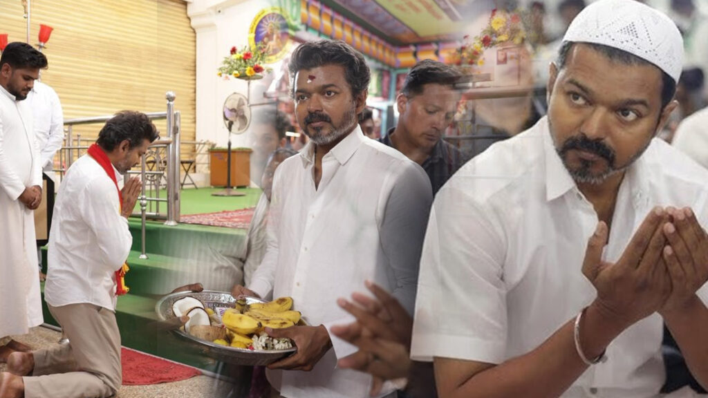 तिरुचिरापल्ली येथे अशीच एक घटना घडली, जिथे अभिनेते-राजकारणी प्रचारापूर्वी स्थानिक सेंट अँथनी चर्चमध्ये त्यांच्या पक्षाचा लाल-पिवळा स्कार्फ परिधान करताना दिसले. हात जोडून नमाज पढताना तो गुडघ्यावर चालतानाही दिसला.