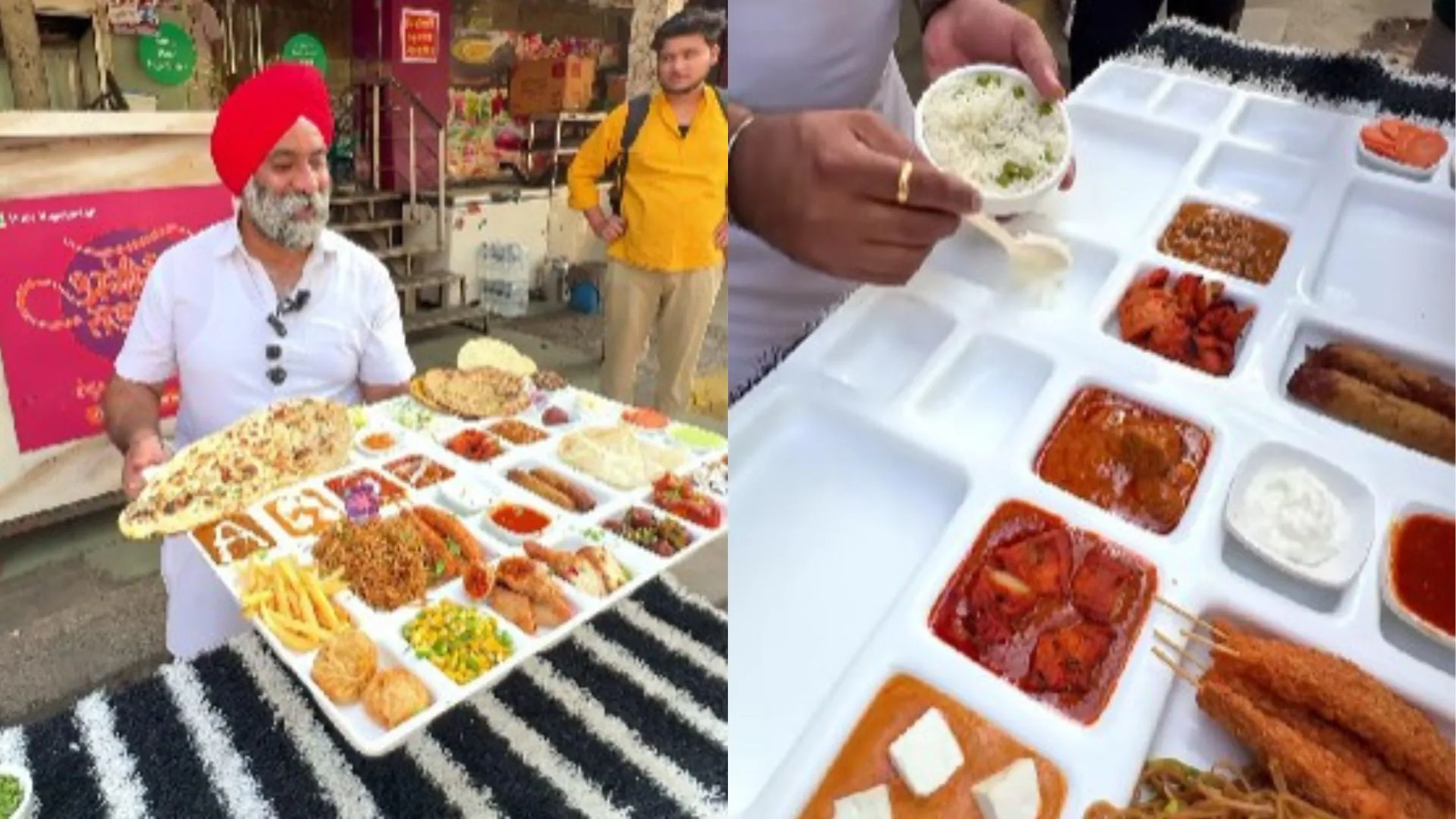 मिक्स केलेले रायता, बासमती तांदूळ मटार, रुमाली रोटी, एक बटर नान, एक लच्चा परांठा, एक मिसळ रोटी आणि दोन पापड देखील घालतो. मिठाईसाठी, विक्रेता गुलाब जामुन आणि दोन प्रकारचे आइस्क्रीम – चॉकलेट आणि व्हॅनिला ऑफर करतो. दिल्लीच्या टिळक नगरमध्ये असलेल्या या दुकानाचे नाव अँगीथी तडका आहे. तुम्ही 1,199 रुपयांना थाळी ऑर्डर करू शकता.