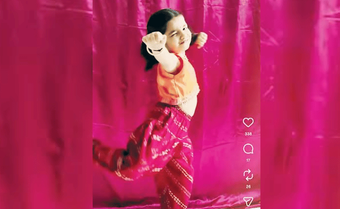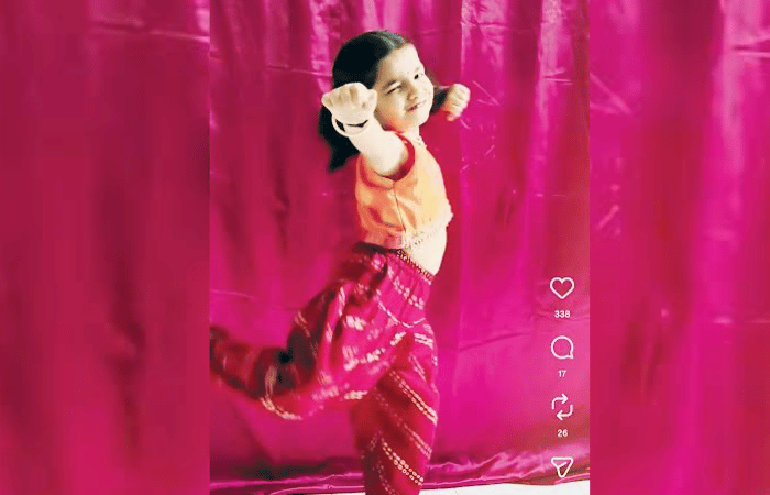 सध्या सोशल मीडियावर एका चिमुकलीचा डान्स चांगलाच व्हायरल झाला आहे. सारेगम मराठीचे जोरदार ट्रेंडमध्ये असलेले ‘तुझ्या रूपानं वेड लावलं, बाई मला गं वेड लावलं..’ या ट्रेंडिंग गाण्यावर सादर केलेल्या चिमुकलीच्या नृत्याने सगळ्यांचेच लक्ष वेधून घेतले. तिच्या अचूक हुक स्टेप्स, आत्मविश्वास, टायमिंग आणि चेहऱयावरील हावभाव पाहून नेटकऱ्यांनी तिच्यावर कौतुकाचा वर्षाव केला आहे. हा व्हिडीओ shivu._9780 या इन्स्टाग्राम अकाऊंटवरून पोस्ट करण्यात आला आहे. व्हिडीओ अपलोड होताच अल्पावधीतच तो प्रचंड व्हायरल झाला. नेटकऱयांनी या डान्सला भरभरून प्रतिसाद देत हजारो लाईक्स व कमेंटचा वर्षाव केला आहे.